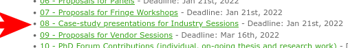 January 21st, 2022February 4th, 2022 → Industrial Case-Study abstracts & charts.February 11th, 2022February 25th, 2022 → Notification of acceptance.March 15th, 2022February 29th, 2022 → (optional) Camera-ready manuscript.